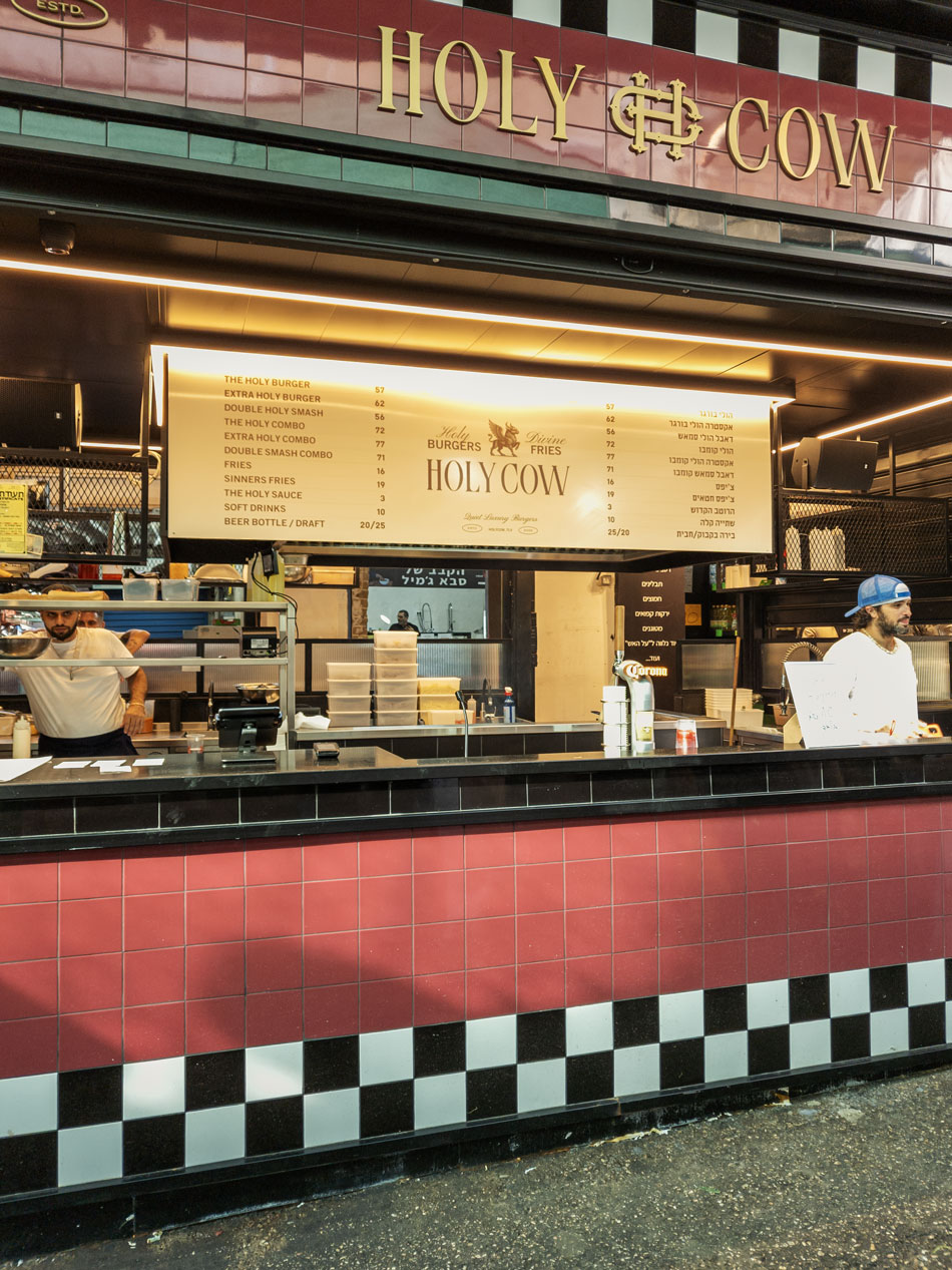 מסעדת פרה קדושה מציעה חוויית המבורגר עירונית בליבה של שוק הכרמל.